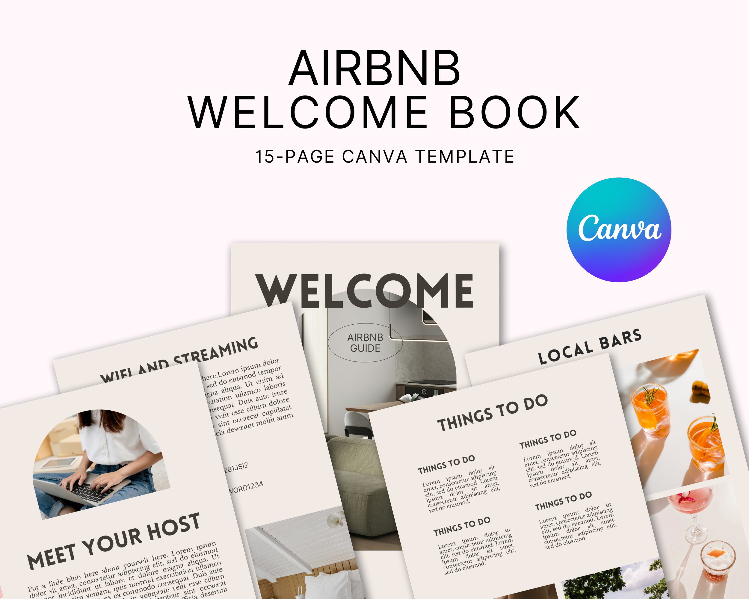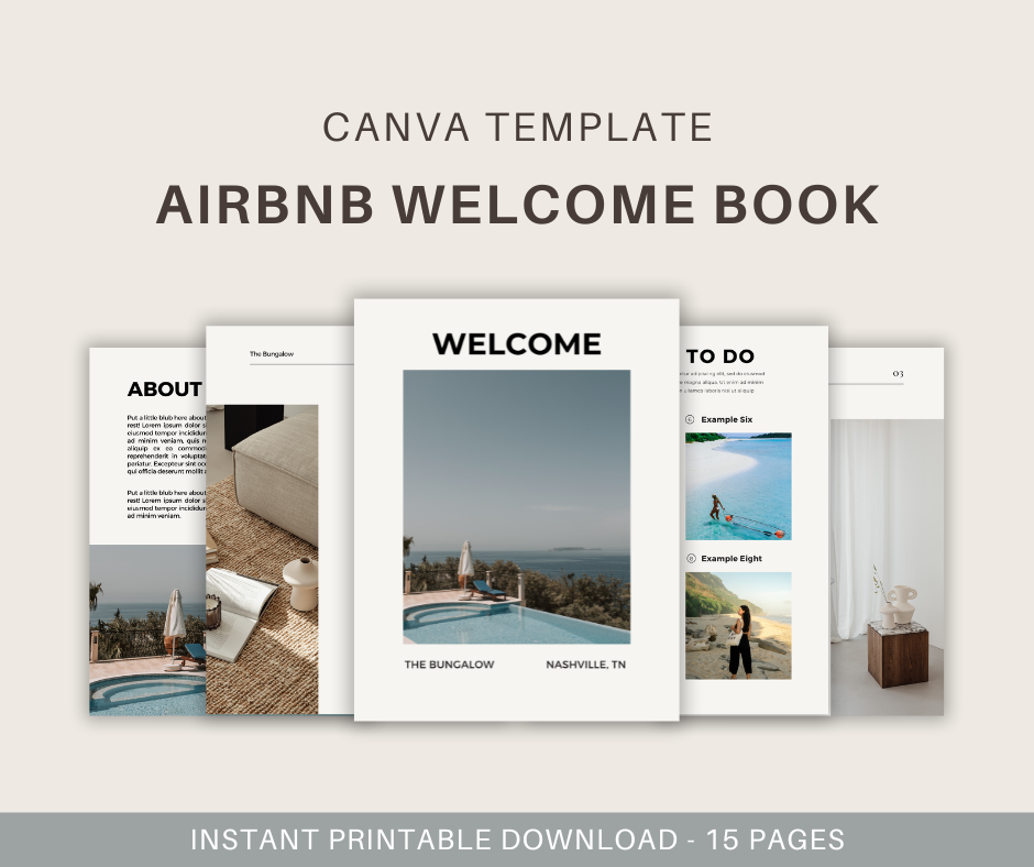 Explore our collection of Canva Template eBooks, designed for effortless customization. Perfect for creating professional welcome books, guides, and more with placeholder text included. Ideal for Airbnb hosts, bloggers, and small business owners. Save time and enhance your brand with beautifully designed templates. Download your Canva Template eBook today!
