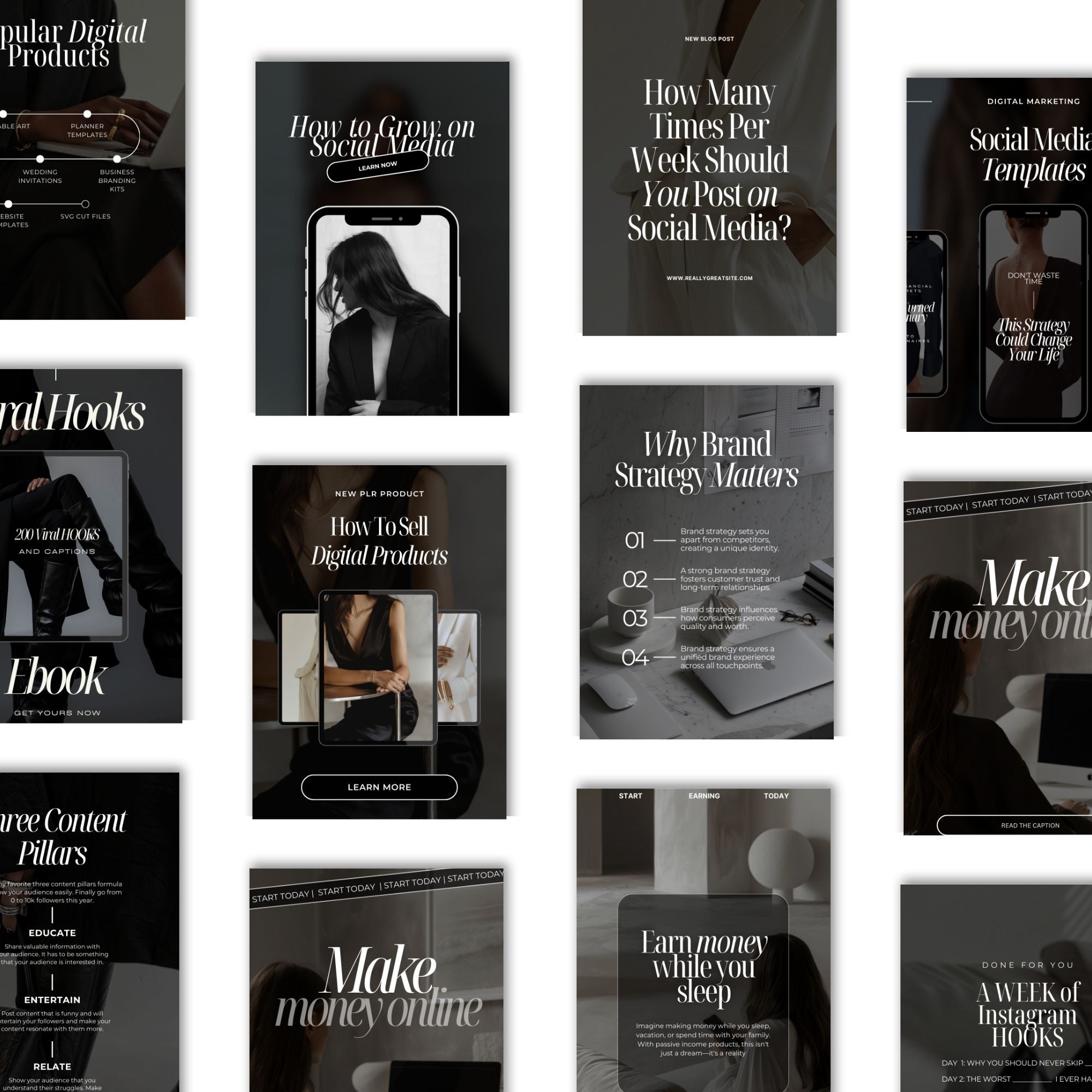 Discover our Template Bundles—a collection of beautifully designed, customizable Canva templates perfect for Pinterest, Instagram, eBooks, mockups, and more! Save time and elevate your brand with cohesive, professional templates that make creating standout content easy. Each bundle offers a variety of templates for effortless branding across platforms, helping you achieve a polished look with minimal effort. Bundle & save with our expertly curated collections designed to meet all your content needs in one place!